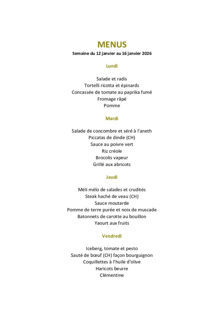 Menus du 12 au 16 janvier 2026