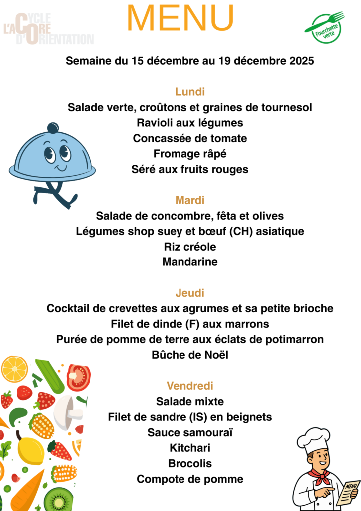Menus du 15 au 19 décembre 2025